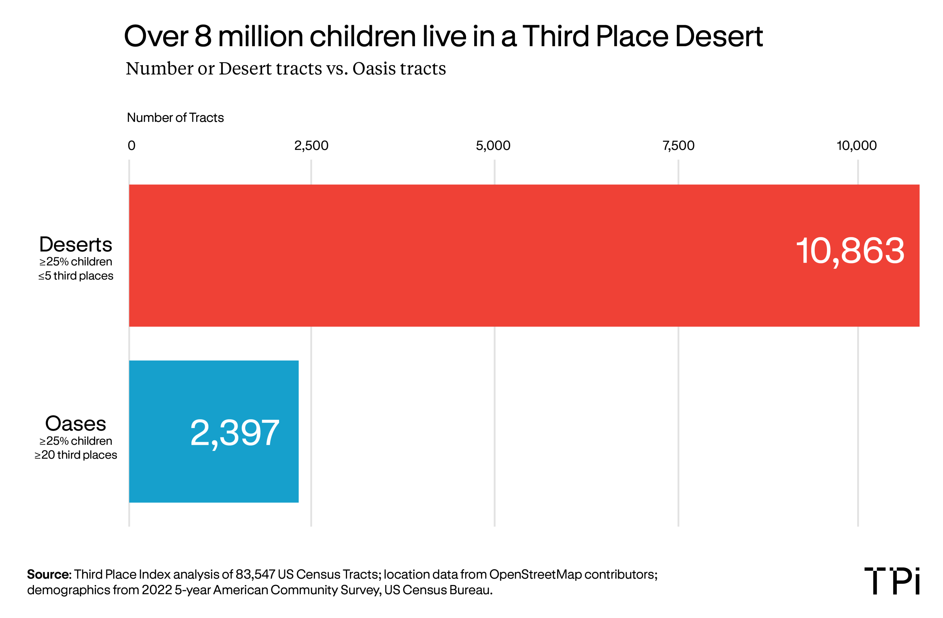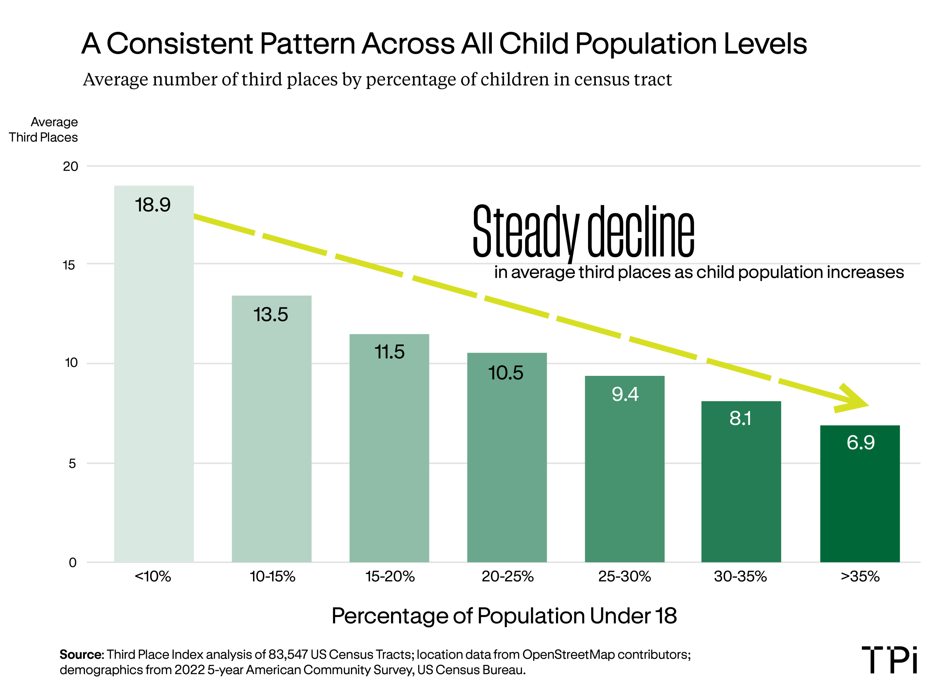This article analyzes the data I compiled to show that the more children there are in a census tract, the less third place access there is in that tract. This points to a feeling that children are being removed from public life, along with their parents.