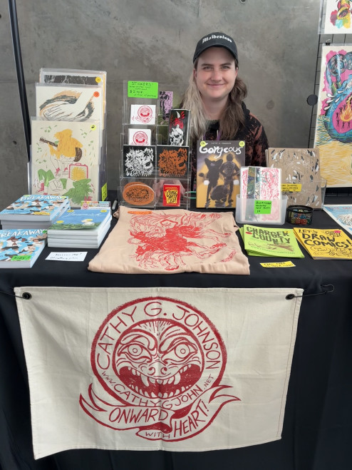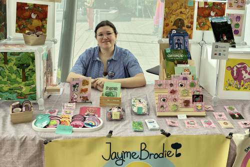 Among the many artists who returned for the Art Market was Jayme Brodie ’21 (Illustration BFA). “It’s been a while since I’ve been back—about four years—but it’s really refreshing to return to the place where I first started selling my work as a student,” she said. “Back in 2017 or 2018, I did some school events, and MICA was so supportive and encouraging of me starting my own business and creating my own work.” That early encouragement, she added, continues to shape her path. “I’m currently working full time as an author and illustrator, and I’m really proud of what I’ve created.”