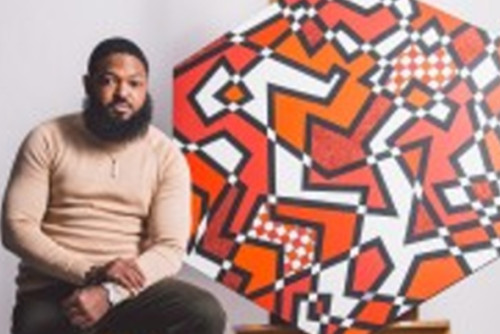 Wendell Supreme Shannon is a fine artist, muralist, and designer whose bold geometric abstractions reflect life’s milestones and transformations. Born in Brooklyn and raised in Baltimore, his journey into art was shaped by resilience—during his sophomore year at Morgan State University, he was diagnosed with Dermatomyositis and Rheumatoid Arthritis, losing the use of his hands for two years. Through treatment and art as therapy, he discovered his calling.